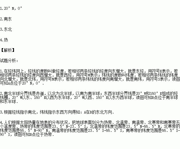 2.B点在半球(南半球或北半球)和半球(东半球或西半球)。