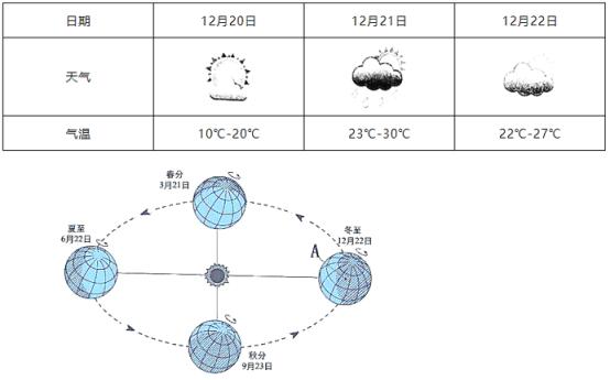 【3】从天气、气温表格中我们可以看出:巴西里约热内卢未来三天的天气状况,据此判断12月21日天气是