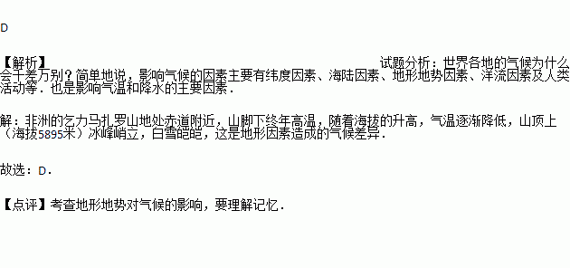 武夷山主峰黄岗山的海拔高度为2158米,当其山麓地带的海拔高度158米的某地温度为10℃时黄岗山的温度为( )
