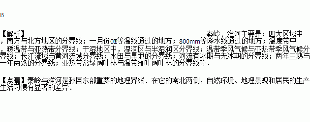 A. 暖温带和中温带的分界线 B. 大致与1月0℃等温线吻合