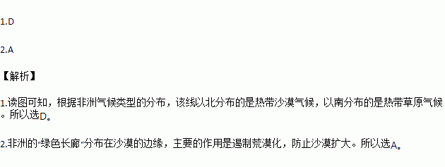 1.非洲的“绿色长城”大致是沿着哪两种气候类型区的交界带延伸( )