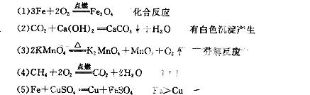 (1)ÌúË¿ÔÚÑõÆøÖеãȼ£º  ¡ø  £»Æä»ù±¾·´Ó¦ÀàÐÍÊÇ£º  ¡ø  ¡£