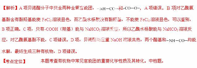 D.贝诺酯与足量NaOH 溶液共热,最终生成乙酰水杨酸钠和对乙酰氨基酚钠