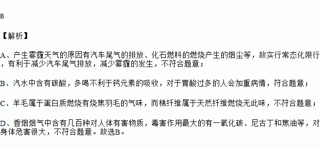 A. 西安实行常态化限行,有利于减少汽车尾气排放,减少雾霾的发生