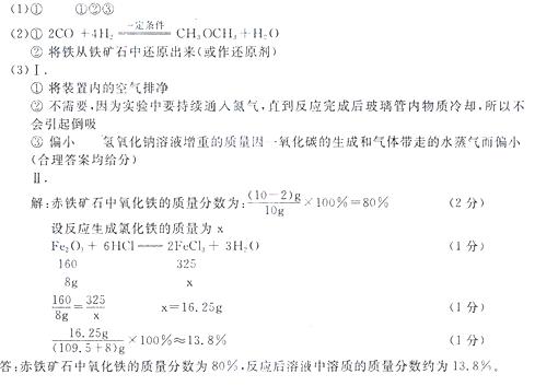 Ⅱ.乙同学取矿石样品10g,加入足量稀盐酸,完全反应后,共用去稀盐酸109.5g过滤得到滤渣2 g(假设杂质既不溶于水也不与酸发生反应)。请你和乙同学—起计算赤铁矿石中氧化铁的质量分数和反应后溶液中溶质的质量分数。(请写出计算过程)。
