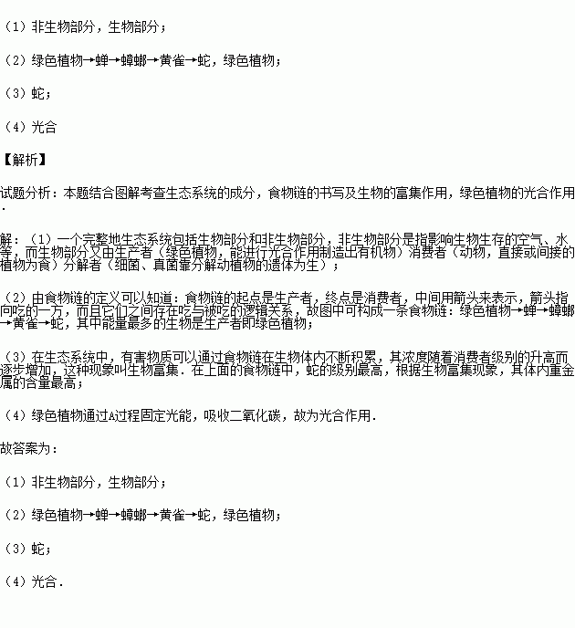 (3)若此生态系统受到重金属污染,那么体内积存重金属最多的生物是 .