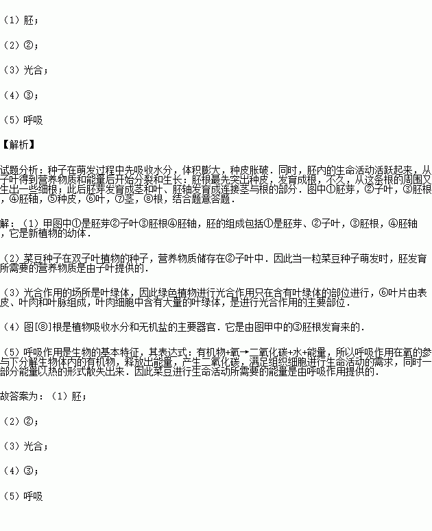 (5)菜豆进行生命活动所需要的能量是由 作用提供的.