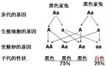(8分) 小亚同学饲养了一对白色家兔(甲为雌性,乙为雄性)。她每天喂养时,①把它们的动作、习性以及各种特点都一一记下来,以便以后进行分析比较。②在她的精心饲喂下,甲、乙两只家兔健康成长,并生下4只可爱的兔宝宝,其中1只黑色,3只白色。