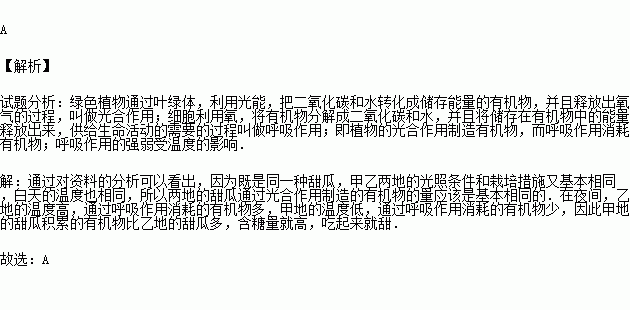 D£®ÒÒµØÒ¹¼äζȽϸߣ¬Ìð¹ÏµÄºôÎü×÷ÓÃÇ¿£¬ÓлúÎïµÄÏûºÄÉÙ