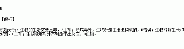 A.生物的生活需要营养 B.生物都是由细胞构成的