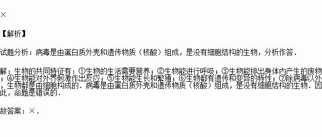 A.需要营养 B.能排泄废物 C.能呼吸 D.能生长