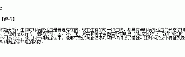 红树林枝繁叶茂、根系发达,能扎根于海滩淤泥中,有效的防止波浪对海岸和海堤的侵蚀。红树林的根系发达属于( )