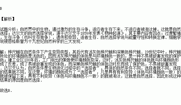 19世纪中叶,生活在英格兰曼彻斯特的桦尺蛾大多是浅灰色的,但一百年后,曼彻斯特变成了一个工业城市,而此时生活在此地的桦尺蛾大多数是深黑色的.桦尺蛾的这种变化是( )