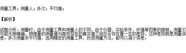 测量时,由于________和________的不同。误差是难以避免的。可以采取________测量取________等方法,尽可能地减少误差。