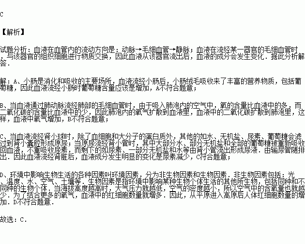 D.管壁薄,只由一层扁平的上皮细胞构成