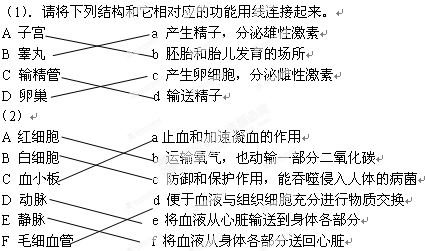 点评:熟记血液各成分及功能,人体生殖系统的结构和功能,就能解答此题.