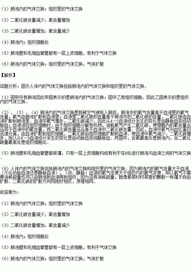 (6)人体内的气体交换包括 和 两个过程,它们是通过 作用而实现的.