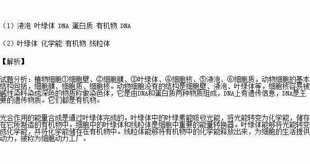 (2)植物的绿色部分可进行光合作用,是因为有_________,植物细胞中的叶绿体可将光能转变成_________ 贮存在它所制造的__________________中,被称为细胞“动力工厂”的是__________________。