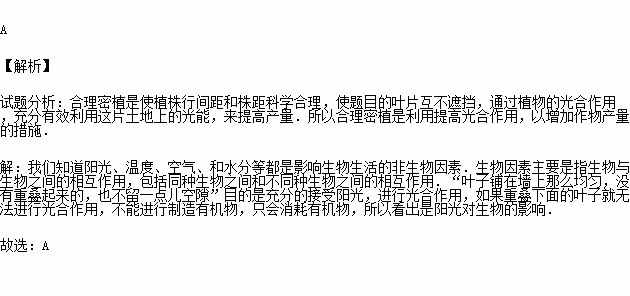 叶圣陶先生曾这样描述爬山虎:“那些叶子铺在墙上那么均匀,没有重叠起来的,也不留一点儿空隙”.从生物学角度分析,这种现象体现了哪一种非生物因素对生物的影响?( )