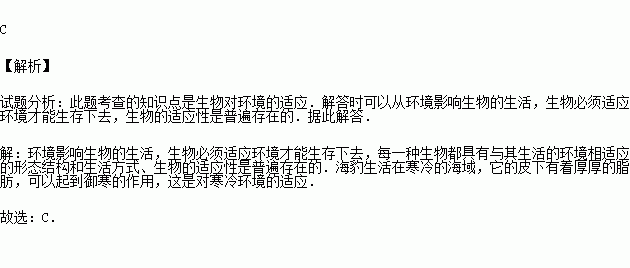 C.海豹对环境的适应 D.海豹为抵御敌害