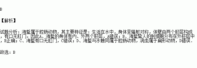 B.海蜇蛰人的刺细胞分布在外 胚层中
