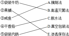 ④干香菇采用的是C、脱水法,其原理是晒干,除去水分,抑制细菌、真菌的生长和繁殖;