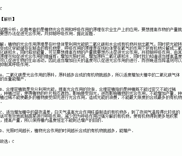 C.保持棚内温度恒定 D.适当增加光照时间