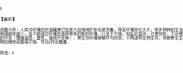 据报载,几乎每年都有至少一种鸟类或哺乳动物从地球上消失,造成它们濒危或灭绝的主要原因是( )
