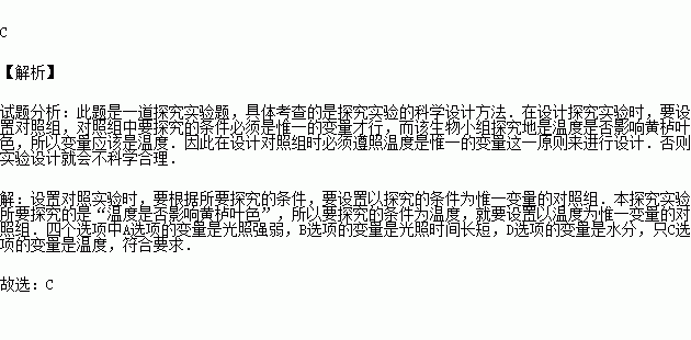 以下是为探究温度是否影响黄栌叶色而进行的实验设计,符合要求的是( )