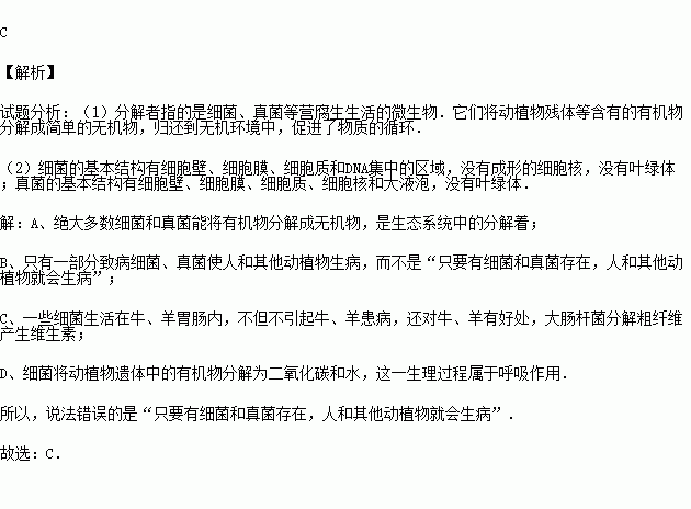 B.只要有细菌和真菌存在,人和其他动植物就会生病