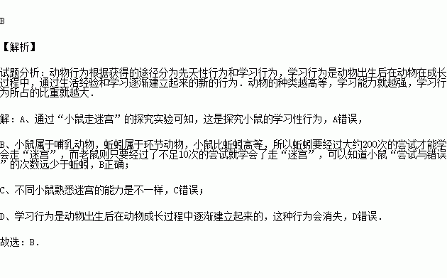 关于“小鼠走迷宫”的探究实验,下列说法正确的是( )