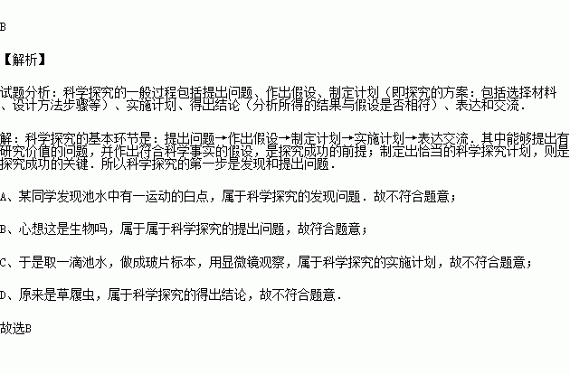 C.于是取一滴池水,做成玻片标本,用显微镜观察