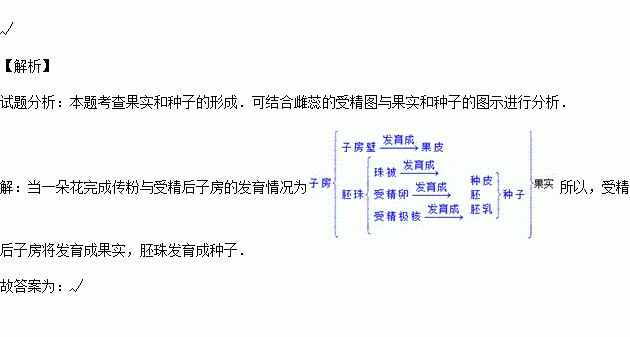 (3)花粉从[⑤] 落到[①] 上的过程叫做 .花粉受到黏液的刺激萌发形成花粉管,最后释放出精子,与[④] 内的卵细胞结合成受精卵,该过程叫 .