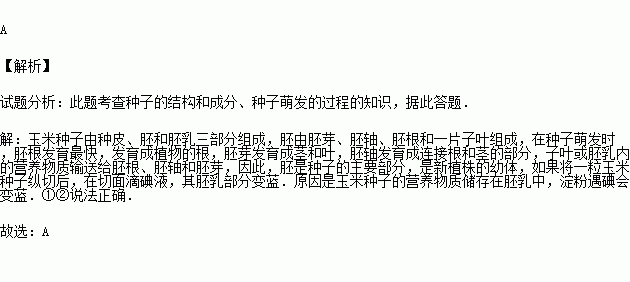 ①玉米种子的胚由胚芽、胚轴、胚根、子叶四个部分组成