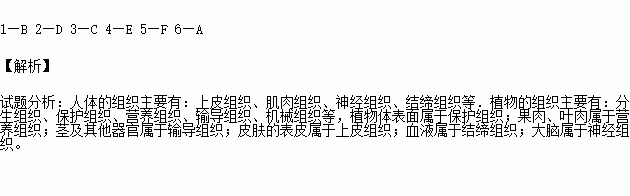 将下列组织与其主要分布部位用线连起来: