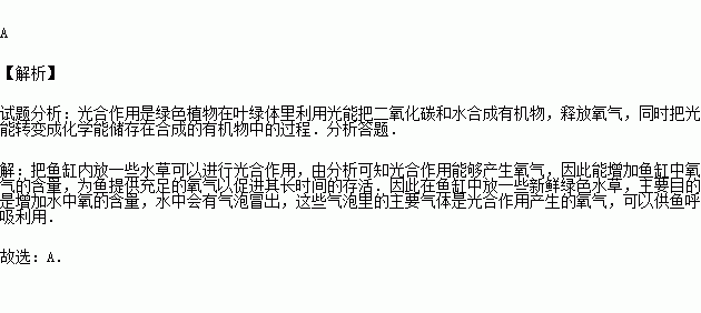 鱼缸内放一些水草,在阳光照耀下,水中会有气泡冒出,这些气泡里的主要气体是( )