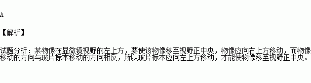 某同学正在使用显微镜,在低倍镜视野中看到的图像偏向左上方他想将物像移到视野正中央,应将玻片( )