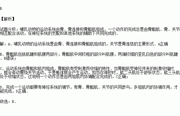 A.运动系统由骨、关节、肌肉组成