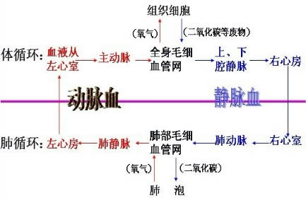 故答案为:体循环;肺循环;心脏;组织处毛细血管;体循环;肺循环