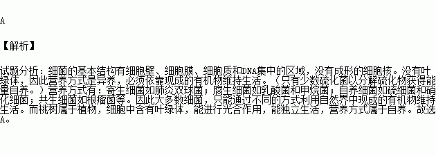 大肠杆菌的结构与桃树细胞相近,都有细胞壁,但大肠杆菌与桃树的营养方式却截然不同,它们的主要区别是( )