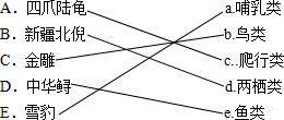 解答:解:A、四爪陆龟,体表覆盖角质甲,用肺呼吸,属于c、爬行动物;