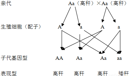 (4)生物的性状由基因控制,基因有显性和隐性之分;当细胞内控制某种性状的一对基因都是显性或一个是显性、一个是隐性时,生物体表现出显性基因控制的性状;当控制某种性状的基因都是隐性时,隐性基因控制的性状才会表现出来.人们常以传统的育种方式通过高秆(Aa)水稻培育抗倒伏的矮秆水稻,其遗传图解如上图: