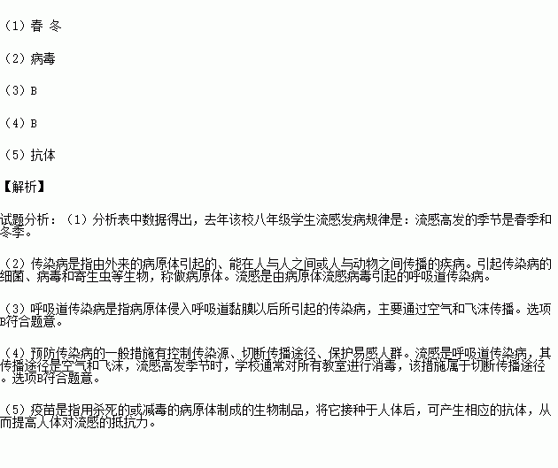 (1)分析表中数据得出,流感高发的季节是 季和 季。