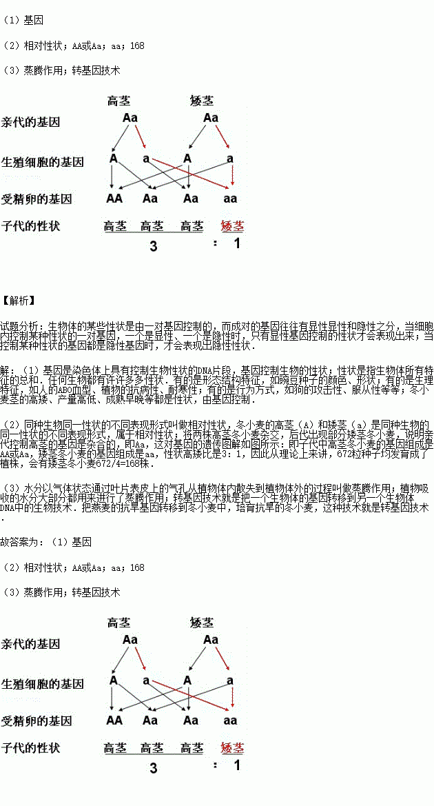 £¨3£©È¥Ä궬ÌìÖÁ½ñ£¬ÎÒÊÐÔâÊÜÁËÑÏÖØ¸Éºµ£¬µ¼Ö¶¬Ð¡Âó´óÁ¿¼õ²ú£¬¿É¼ûË®·Ö¶ÔÖ²Îï¾ßÓзdz£ÖØÒªµÄ×÷Ó㬶¬Ð¡ÂóÒ»ÉúÖÐÎüÊÕµÄË®·ÖÖ÷ÒªÓÃÓÚ £¨ÌîÉúÀí¹ý³Ì£©£®¿ÆÑ§¼ÒÕýÊÔͼ°ÑÑàÂóµÄ¿¹ºµ»ùÒò×ªÒÆµ½¶¬Ð¡ÂóÖУ¬ÅàÓý¿¹ºµµÄ¶¬Ð¡Âó£¬ÕâÖÖ¼¼ÊõÔÚÉúÎïѧÉϳÆÎª £®