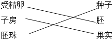 在从花到果实的发育过程,请用直线将相应的名称联系起来.
