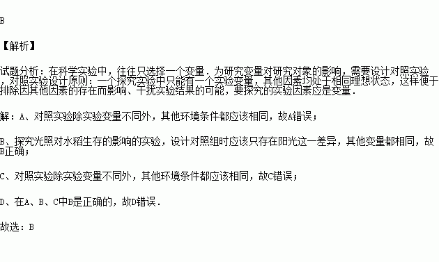 探究光照对水稻生存的影响的实验,设计对照组时应该( )