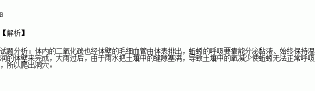 蚯蚓一般营穴居生活,但夏季雨后蚯蚓在地面上活动,原因是 ( )