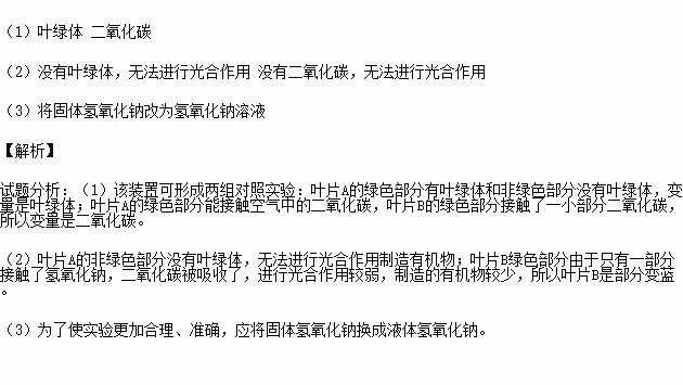 ijͬѧΪ̽¾¿ÂÌɫֲÎïµÄ¹âºÏ×÷Óã¬Ñ¡ÔñÁËÒ»ÖÖÅèÔÔ°ßÒ¶Ö²Îï×÷ΪʵÑé²ÄÁÏ£¬¸ÃÖ²ÎïµÄÂÌÉ«²¿·ÖºÍ·ÇÂÌÉ«²¿·Ö£¨ÎÞÒ¶ÂÌÌ壩½çÏÞÇåÎú£¬ÊµÑé×°ÖÃÈçͼËùʾ¡£¹ÌÌåÇâÑõ»¯ÄÆÄÜÎüÊÕ¶þÑõ»¯Ì¼¡£