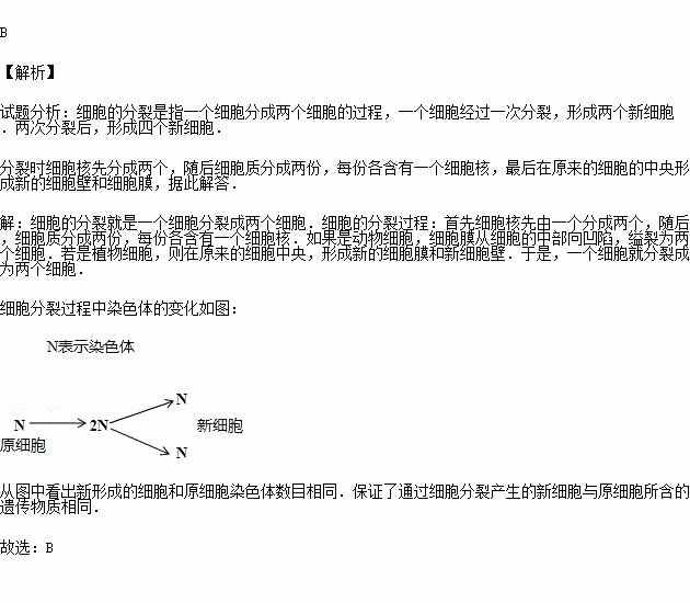 洋葱根尖的一个细胞经过一次分裂,结果是( )