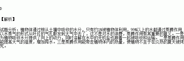 炎炎夏日,植物的叶片没有被灼伤,能降低植物体的温度的原因是( )